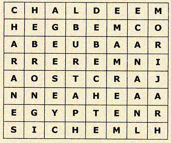 Lorsque vous aurez trouvé tous les mots de la liste, ci-dessous, dans la grille, vous trouverez le lieu ou Abraham planta des tamaris |