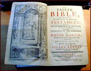 La première traduction de la Bible en français d’après les textes originaux (hébreu : Ancien Testament, grec : Nouveau Testament) par Robert Olivetan, cousin de Calvin, a été publiée à Neuchâtel (Suisse) en 1535. l’initiative de cette œuvre revient au synode des églises vaudoises qui, dans la session du 12 septembre 1532 à Chanforans, avait résolu de faire les frais pour une Bible en français.